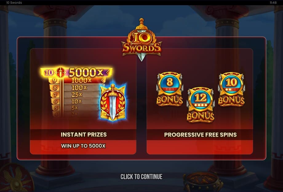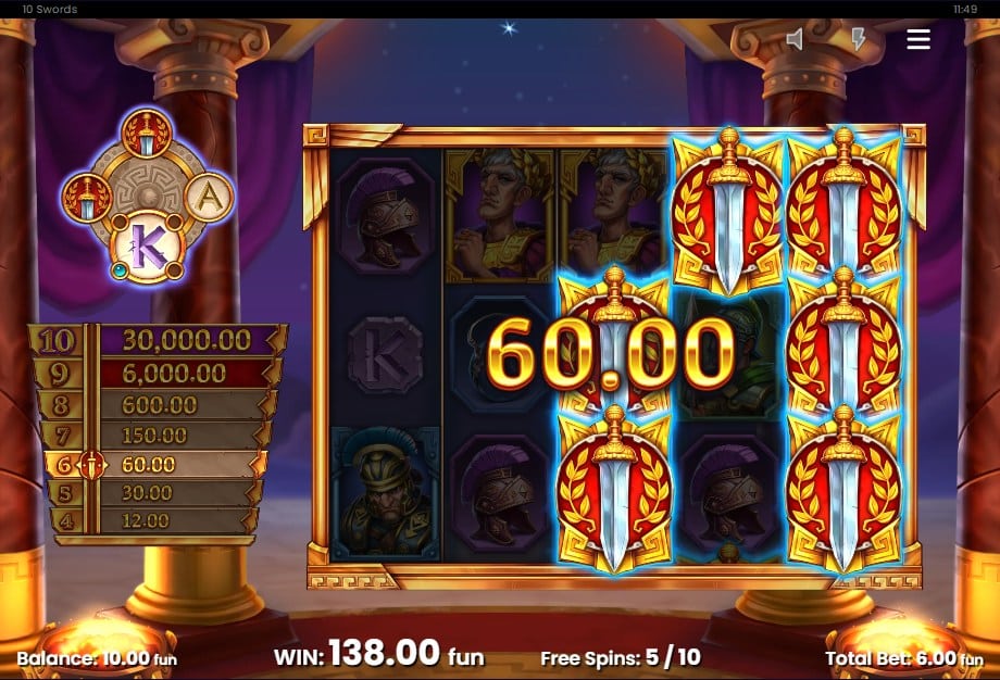 Benieuwd of jij de arena als overwinnaar verlaat? Slijp je zwaard in de 10 Swords demo hierboven of speel direct voor echt geld bij een nieuw online casino.