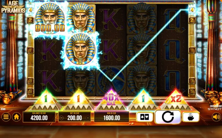 Reis af naar het oude Egypte en ontdek de verborgen krachten van de farao’s in Age of Pyramids, een nieuwe en zeer innovatieve gokkast van SYNOT Games. Dit spel onderscheidt zich van de massa door een uniek ‘Progressive Collection’-systeem. In plaats van te wachten op een enkele bonusronde, ben je constant bezig met het vullen van vijf verschillende meters boven de rollen. Elke rol heeft zijn eigen kleur scatter-symbool en zijn eigen unieke ‘Collect Feature’. Van ‘Hold & Respin’ tot ‘Multiplier Respins’ en gegarandeerde winsten; dit spel biedt een enorme variatie aan bonus-actie. Met een maximale winst van €250.000 is dit een piramide-expeditie met vijf verschillende paden naar rijkdom.