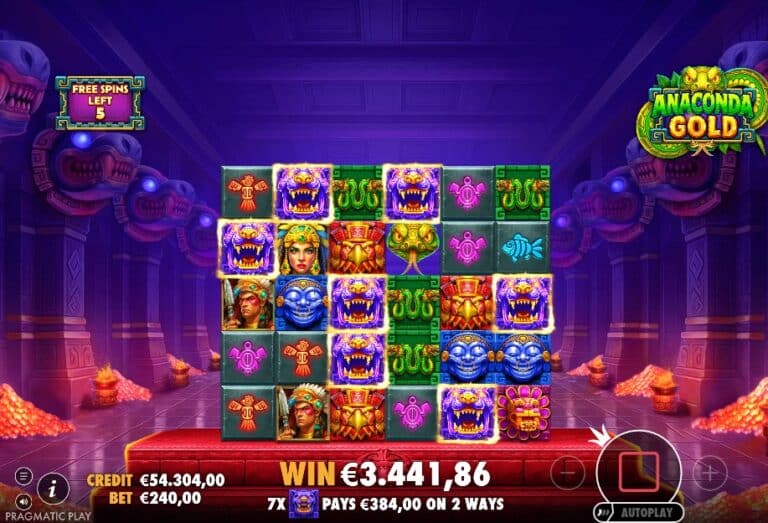 Anaconda Gold is een zeer vermakelijke gokkast, simpelweg omdat de ‘Expanding Rows’-mechaniek van ELK Studios fantastisch is. De ‘sticky’ rijen in de bonusronde zorgen voor een geweldige opbouw. De ‘Money Collect’-toevoeging voelt een beetje overbodig, maar stoort niet. Met een uitstekende RTP van 96,54% (kan variëren) en een Bonus Buy-optie (100x) is dit een prima keuze voor spelers die houden van de ‘ELK Gold’-gameplay, maar een ander thema zoeken. Betreed de tempel en speel de Anaconda Gold demo!