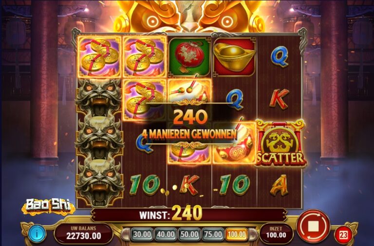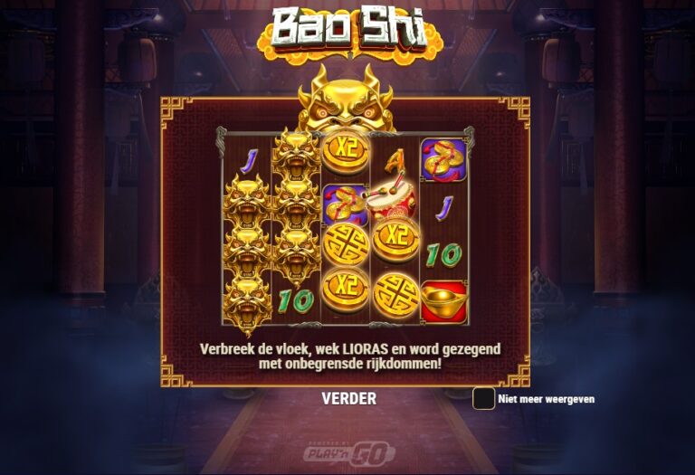 Bao Shi is een gokkast die volledig draait om geduld. De basisgame is een lange, stille meditatie in een prachtige tempel, waarbij je hoopt op een teken van de goden. Dat teken is de ‘Lioras Blessings’-feature. Het is een willekeurige, explosieve gebeurtenis die een saaie spin in een klap kan omtoveren in een grote winst met multiplier wilds. De free spins-ronde is simpelweg een versie waar deze zegeningen vaker en krachtiger zijn. Het is een ‘alles-of-niets’-spel: 95% van de tijd is het rustig, 5% van de tijd is het pure, goddelijke chaos. Een perfecte gokkast voor de zen-gokker met stalen zenuwen.