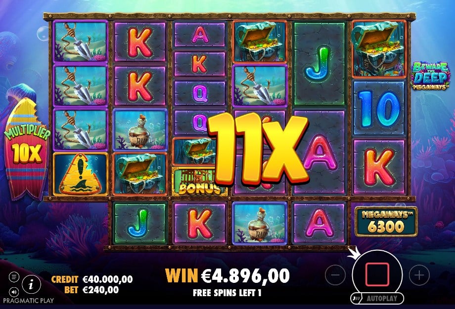 • The Deep Free Spins (Gegarandeerde Spins): Dit is de meer traditionele optie. Je krijgt een vast aantal gratis spins (bijvoorbeeld 10 voor 4 scatters) en speelt met een progressieve winstmultiplier die bij elke tumble met +1 stijgt. De Wild Shark kan multipliers tot x100 bevatten, die worden opgeteld bij de totale multiplier.