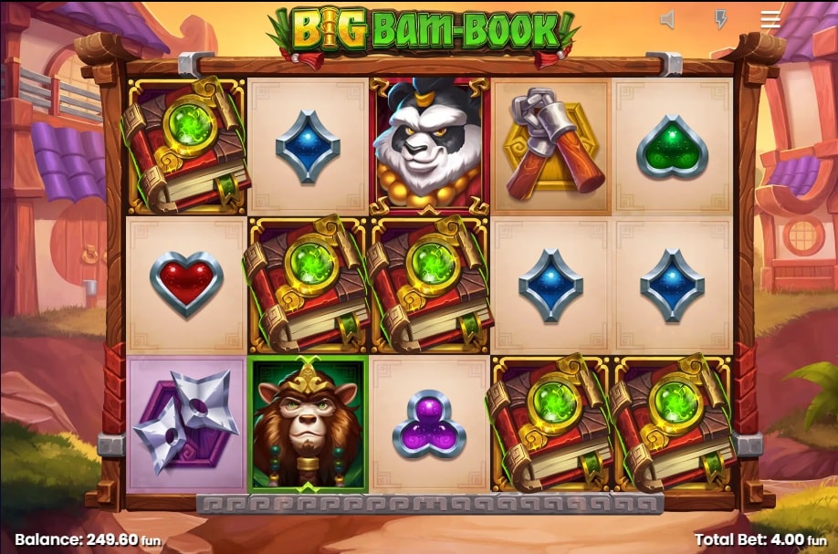 Het is fascinerend om te zien hoe ontwikkelaars hun eigen succesformules blijven heruitvinden. Push Gaming heeft met de ‘Big Bamboo‘ reeks goud in handen en besluit nu een compleet nieuw hoofdstuk toe te voegen aan deze saga. In de Big Bam-Book demo terug naar de basis: een rustiek dorpje in het Aziatische platteland. Maar laat je niet misleiden door de tjilpende vogels en de rustgevende guqin-muziek op de achtergrond. Deze panda is namelijk niet alleen op zoek naar bamboe, maar heeft een literair meesterwerk ontdekt dat de regels van het spel volledig op zijn kop zet. Het is een slimme samensmelting van hun populaire bamboe-mechanisme met het geliefde ‘Book of’-genre.