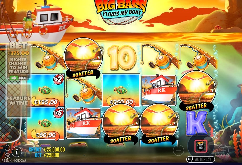 Er is ook een Feature Buy: standaard free spins (100x inzet) of Super Free Spins (300x inzet), waarbij je sneller extra spins retriggert. Let op: bij Nederlandse casino’s is bonus buy niet beschikbaar, maar in de Big Bass Floats My Boat demo kun je het vaak wel uitproberen.