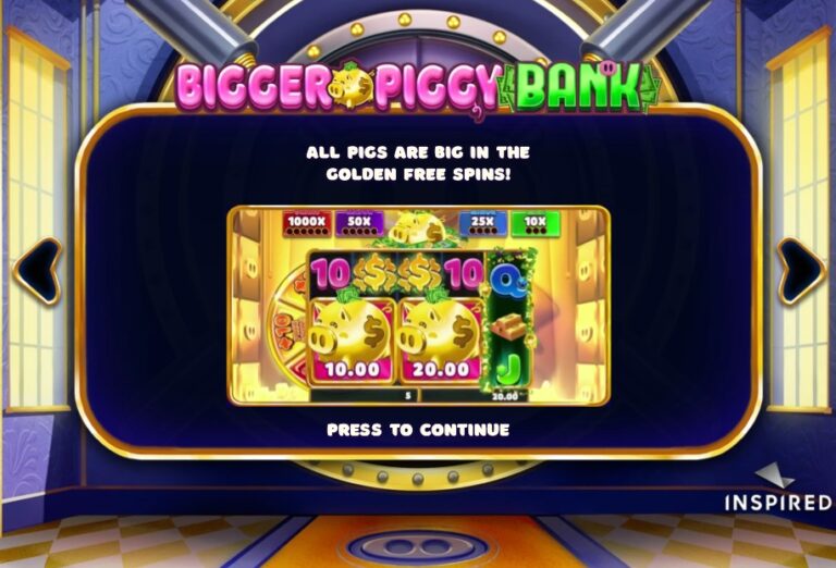 Op het eerste gezicht lijkt Bigger Piggy Bank van Inspired Gaming een vrolijke, maar standaard, ‘money collect’-gokkast. Echter, onder de cartooneske buitenkant van goudstaven en spaarvarkens schuilt een verrassend diepgaand en gelaagd systeem. Dit spel draait niet om één simpele ‘collect’-feature; het is een complexe machine met meerdere, afzonderlijke trigger-routes naar de bonus. Je jaagt tegelijkertijd op de standaard free spins-ronde (via de ‘Bonus Entry’-symbolen) én op de willekeurig geactiveerde ‘Piggy Wheel Bonus’. Met een innovatieve ‘Fortune Spins’-modus en een ‘Gamble’-feature, is dit een gokkast die de speler een zeldzame hoeveelheid strategische keuzes biedt.