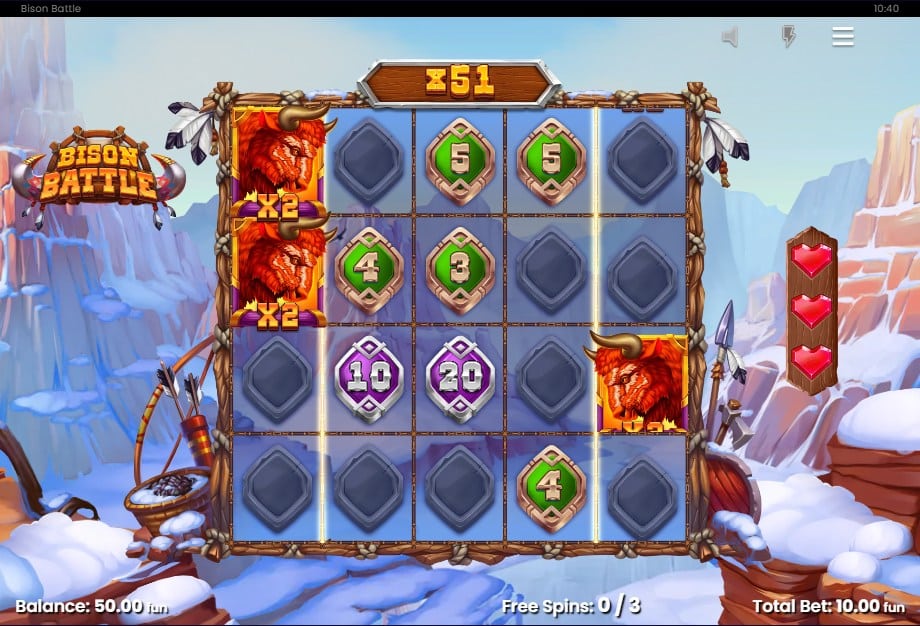 Daarnaast is er de ‘Ice Park’ feature, een variant op de populaire ‘streak respins’. Hierin verzamel je munten en bizons die als multipliers fungeren. Het is een zenuwslopend spelletje waarbij elke nieuwe munt je spins reset en je winstpotentie verhoogt.