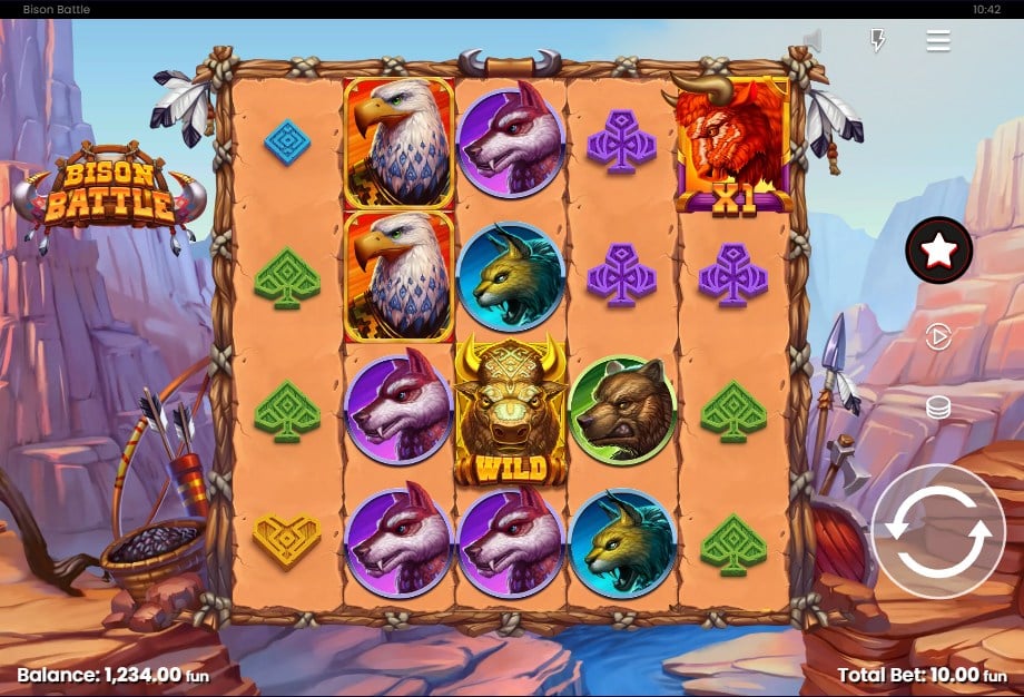 Durf jij tussen de bizons te staan? Start de Bison Battle demo of speel deze gokkast bij TOTO of Casino777.