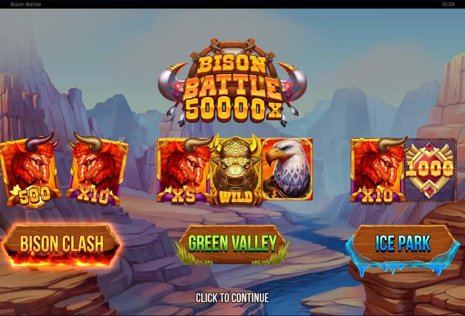 De Noord-Amerikaanse prairie is een geliefd decor voor online gokkasten, maar Push Gaming laat met Bison Battle zien dat er nog genoeg leven in dit thema zit. We bevinden ons in een adembenemend landschap waar de bizons de dienst uitmaken. De sfeer verandert mee met de features: van een zonnige groene vallei tot een ijzige vlakte. Het spel draait om de strijd tussen verschillende gekleurde bizons die over het scherm denderen. Als ze elkaar ontmoeten, barst het spektakel los. Het is een thema dat kracht uitstraalt en technisch perfect is uitgevoerd, zoals we van deze studio gewend zijn.