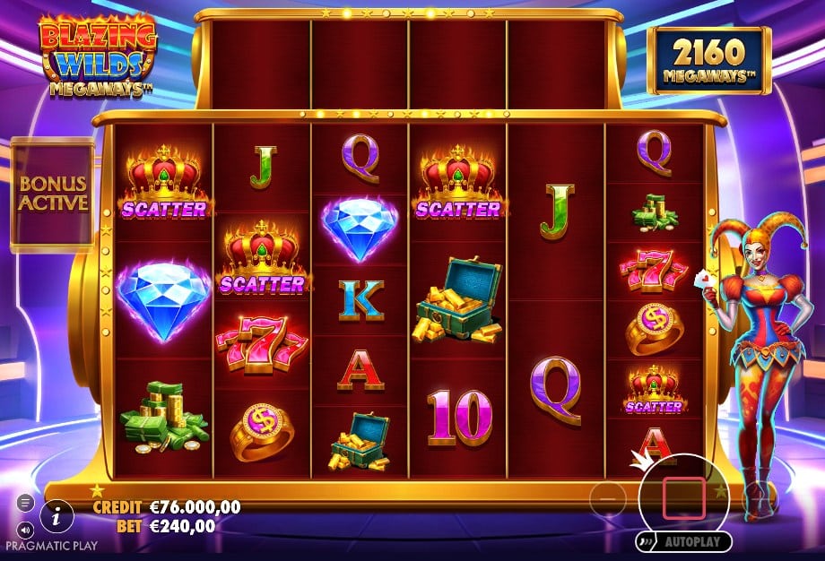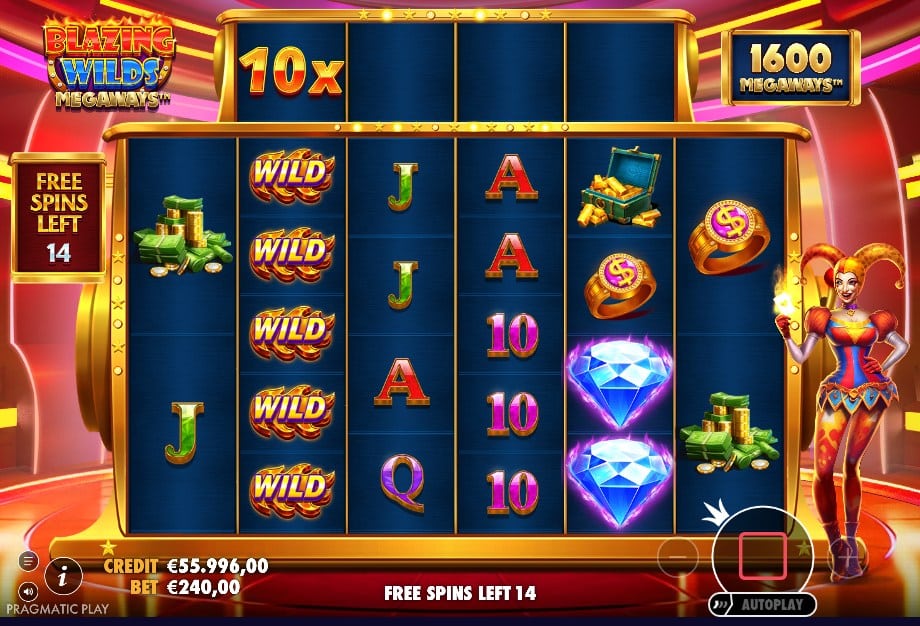 De Blazing Wilds Megaways demo is zo’n gokkast die je meteen in een casino-sfeer gooit: glimmende diamanten, 777’s, geldkistjes en een joker die naast de rollen staat alsof hij elk moment een kaarttruc gaat doen. Deze Megaways-titel van Pragmatic Play draait vooral om één ding: wilds die niet “gewoon” invallen, maar omhoog uitgroeien tot een hele stapel en daarna je win kunnen vermenigvuldigen.