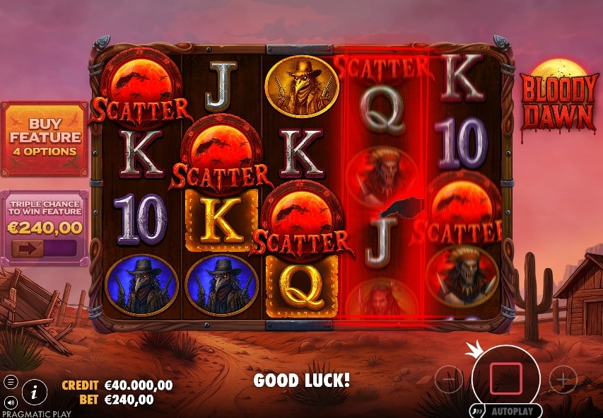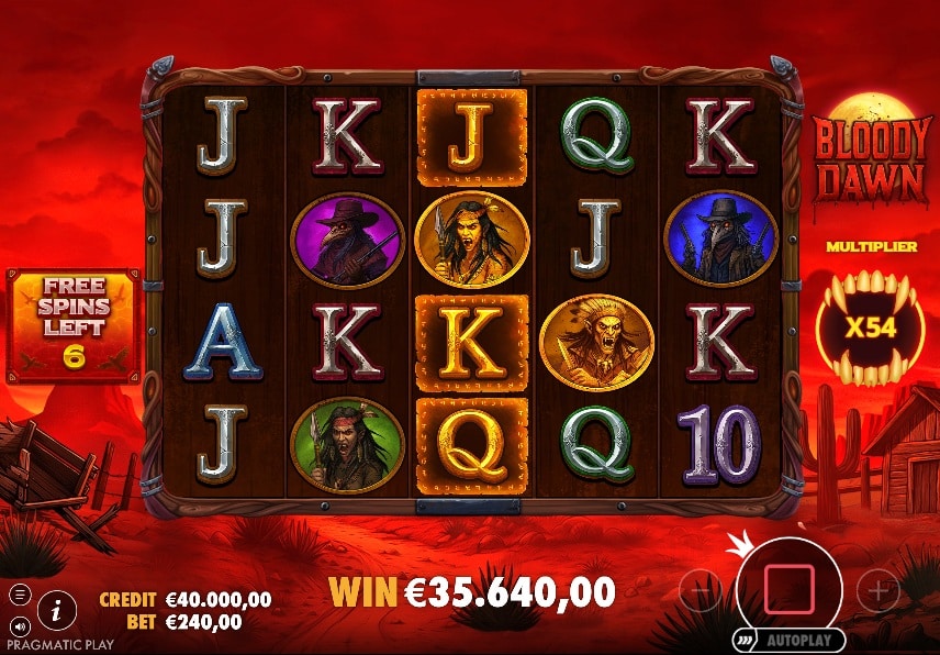 Bloody Dawn is een fantastische en zeer sfeervolle gokkast. De combinatie van het ‘Tumble’-systeem, de ‘Gold Symbol’-wilds en de progressieve multiplier is een gouden formule. De bonusronde, met zijn persistente en escalerende multiplier, is een meesterwerk van opbouwende spanning. Het spel voelt als een perfecte fusie tussen de ‘Wild West’-sfeer van Wanted Dead or a Wild en de ‘cascade + multiplier’-gameplay van Gates of Olympus. Voor de ongeduldige vampierjager zijn er een ‘Ante Bet’ en diverse Bonus Buy-opties. Een absolute must-play. Overleef de nacht en speel de Bloody Dawn demo!