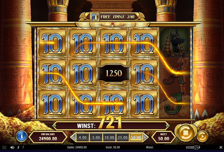 De Tomb scatters (de sarcofaag) kunnen overal landen en doen meteen dienst als wild. Met 3 of meer scatters start je de free spins en daar draait het nog steeds om dat ene trucje dat Book of Dead beroemd maakte: vóór de bonus wordt één normaal symbool gekozen als expanding symbool. Zodra dat symbool in een winnende combinatie valt, klapt het hele rolvak open en telt het over alle lijnen. Het fijne is dat je tijdens de free spins ook kunt retriggeren, waardoor de bonus soms lekker blijft doorlopen.