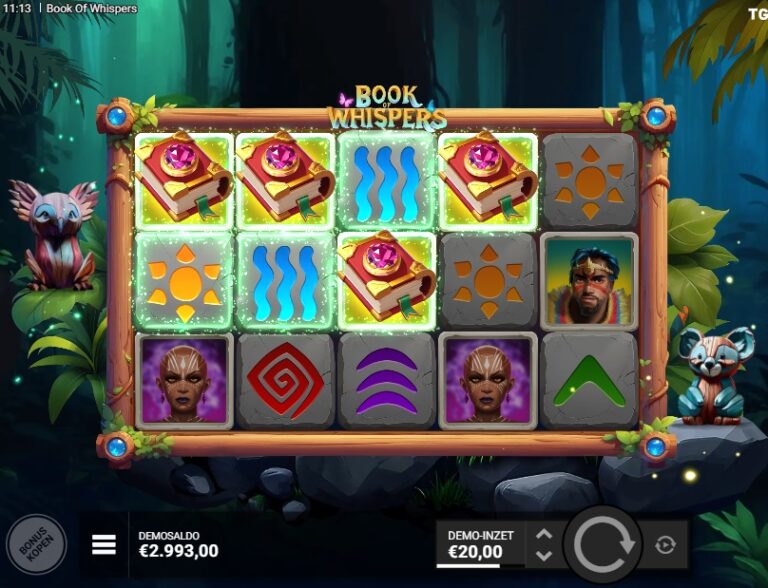 Verdiep je in de mysteriën van de jungle met Book of Whispers, een nieuwe gokkast van de jonge studio Trusty Gaming. Zoals de titel al verraadt, is dit een toevoeging aan het meest verzadigde genre in de online casinowereld: de ‘Book of’-gokkast. Het spel neemt je mee naar een sfeervolle, groene jungle vol met totempalen en tribale personages. Echter, waar veel moderne ontwikkelaars proberen om een unieke draai te geven aan de klassieke formule, kiest Trusty Gaming voor de veiligste en meest basale weg. Dit is een pure, onvervalste en extreem rechttoe rechtaan kloon van de originele ‘Book of’-mechaniek. Verwacht geen innovatieve twists of verrassende features; dit is de klassieke gameplay in zijn meest uitgeklede vorm, met een standaard maximale winst van 5.000x de inzet.