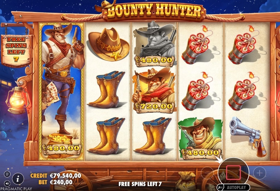 Het spel speelt zich af op een 5×3 raster met 20 vaste winlijnen, te midden van een sfeervol en levendig Western-stadje. De symbolen bestaan uit cowboy-attributen en vier grijnzende bandieten, die fungeren als de premium en ‘Money’-symbolen. De kern van de gameplay is de Money Collection-feature. De vier bandiet-symbolen kunnen willekeurig landen met een geldwaarde tot 100x. Om deze te innen, heb je het ‘Collector’-symbool (de premiejager) op de eerste rol nodig. Wanneer deze landt, klapt hij uit en start het duel. De premiejager neemt het één voor één op tegen elke bandiet met een geldwaarde. Als hij het duel wint, wordt de prijs geïnd. Als hij verliest, krijg je niets. Bij elke gewonnen duel stijgt een multiplier met +1 voor de volgende verzameling binnen dezelfde spin. De RTP is een 94,50% bij de meeste Nederlandse online casino’s (zoals TOTO en Unibet).