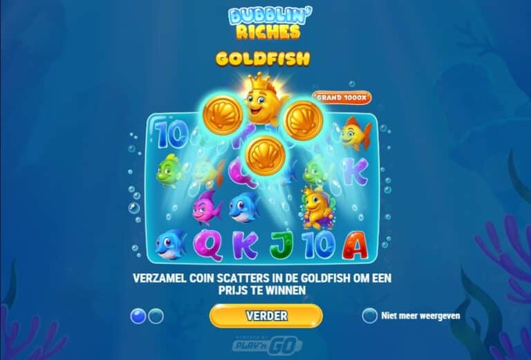 Bubblin’ Riches is een gokkast met een identiteitscrisis. Het is de Egyptische avonturier uit Tomb of Gold 2 die een duikpak heeft aangetrokken en besloten heeft dat hij liever tussen de vissen zwemt. De gameplay is een exacte, onverbloemde kopie. De keuze tussen de ‘hold-and-win’-bonus en de free spins-ronde met een progressieve multiplier is nog steeds een uitstekende feature, maar de vrolijke, bijna kinderlijke ‘Finding Nemo’-vibe voelt een beetje misplaatst voor zo’n volatiele en potentieel brute gokkast. Een prima spel, maar volledig overbodig als je het origineel al kent.