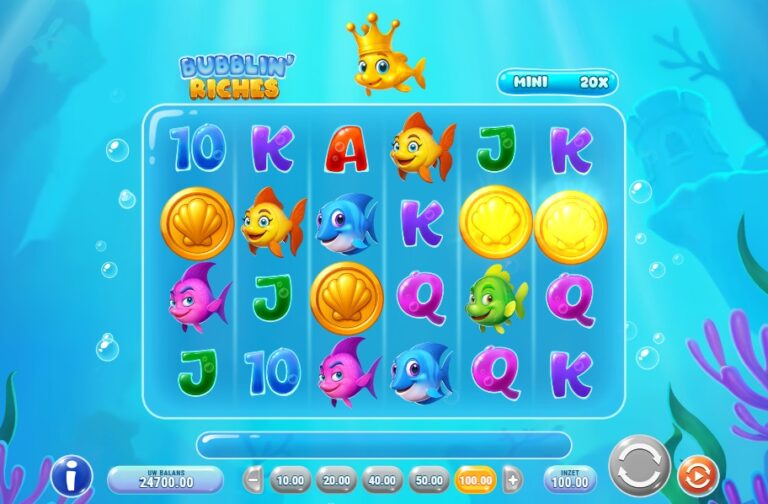 Neem een duik in een vrolijke en kleurrijke onderwaterwereld in Bubblin’ Riches, een nieuwe gokkast van Play’n GO. In dit aquatische avontuur, dat doet denken aan een geanimeerde kinderfilm, word je omringd door lachende vissen en borrelende schatten. Voor de oplettende speler zal de gameplay echter direct bekend aanvoelen; dit is een directe ‘reskin’ van de eerdere, Egyptische gokkast Tomb of Gold 2. De piramides zijn ingeruild voor koraalriffen, maar de onderliggende motor is identiek. Dit betekent dat we opnieuw een gokkast krijgen met twee compleet verschillende bonusrondes: een klassieke ‘Lock’n Gold’ hold-and-win feature en de ‘Reward Spins’, een free spins-ronde met een progressieve, globale multiplier. Met een solide maximale winst van 10.000x de inzet is dit een duik die de moeite waard kan zijn.
