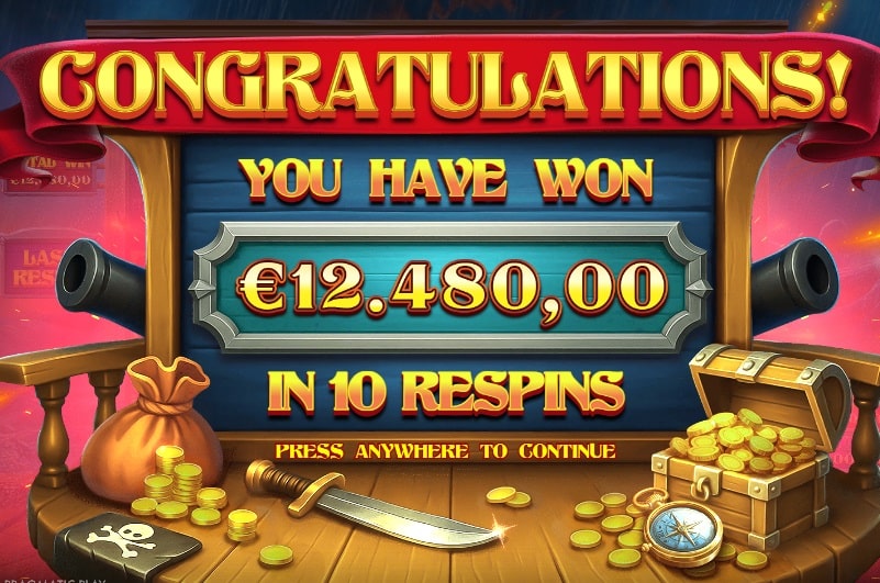 De lage symbolen zijn 9, 10, J, Q, K, A en het anker, met prijzen tot 1,5x je inzet. Hogere winsten komen van de octopus, vrouwelijke piraat en Captain zelf, die tot 10x betalen. Het Wild-symbool (het piratenschip) vervangt alle symbolen behalve Respins. Speciale Money-symbolen hebben waardes van 1x tot 25x je inzet of bevatten een jackpot: Minor (40x), Major (200x) of Grand (2.000x).