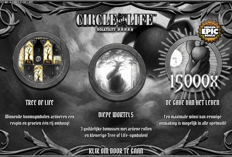 Circle of Life is een typische Hacksaw Gaming productie: duister sfeervol en potentieel zeer lucratief. Het thema van leven en dood is prachtig uitgewerkt in de visuals waarbij de kleurloze wereld tot leven komt zodra de bomen groeien. Het mechanisme van de groeiende bomen en de daaropvolgende Circle of Life spin zorgt voor een unieke spanningsboog. Je weet dat als die boom de top bereikt er echt iets moois kan gebeuren. De toevoeging van ‘Active Reels’ in de hogere bonusrondes is een slimme vondst die garandeert dat de actie niet stilvalt. Het is geen spel voor tere zieltjes maar voor de liefhebber van hoge variantie en diepe thema’s is dit een voltreffer.