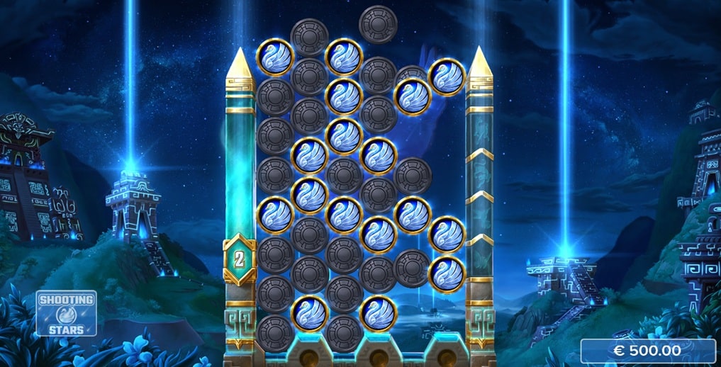 Het spel start op een 6×4 raster met 4.096 winmanieren, waarbij symbolen door de zwaartekracht naar beneden rollen na elke ‘Avalanche’. Bij elke winst wordt er een extra rij toegevoegd, tot maximaal 8 rijen en 262.144 ways. De grote vernieuwing is het ‘Star Constellation’-systeem. Op de achtergrond van het speelveld zie je sterrenpatronen. Als winnende symbolen voor deze sterren landen, worden ze ‘actief’. Activeer je genoeg sterren, dan triggert de ‘Starlight’-feature, die alle symbolen op de lijnen van het sterrenbeeld verandert in hetzelfde symbool of wilds. Dit helpt je niet alleen aan winsten, maar laat je ook progressie maken naar het volgende sterrenbeeld-niveau.