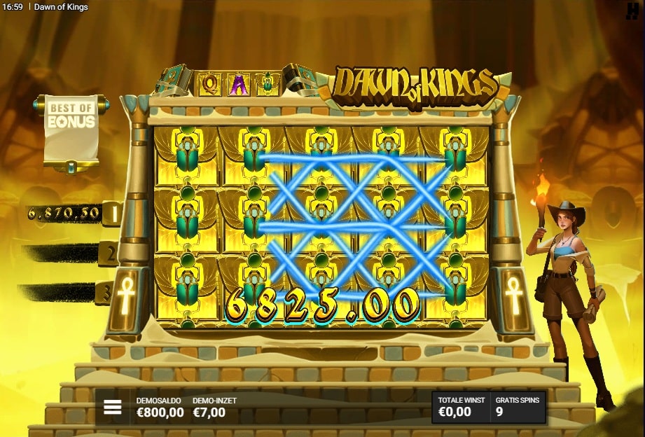 Dawn of Kings is een ijzersterke inzending in het overvolle ‘Book of’-genre. Hacksaw Gaming laat zien dat ze een klassiek concept kunnen pakken en er hun eigen draai aan kunnen geven zonder de ziel van het spel te verliezen. De toevoeging van de ‘Best Of’ bonusrondes is briljant; het geeft je als speler een soort verzekering tegen pech. Ook het feit dat uitklappende symbolen willekeurig in het basisspel kunnen vallen, houdt de vaart er lekker in. Met 13 winlijnen en een max win van 10.000x biedt het spel net wat meer waar voor je geld dan de oude garde. Een absolute aanrader voor wie houdt van Egypte-slots maar toe is aan een moderne upgrade.