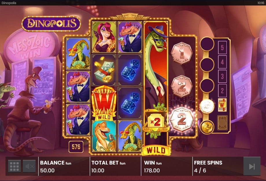 Stel je voor dat de dinosauriërs nooit zijn uitgestorven, maar in plaats daarvan een bruisend leven leiden vol casino’s en rock-‘n-roll. Dat is precies de wereld die Push Gaming schetst in de Dinopolis demo. We zien een T-Rex in een smoking, een Triceratops aan de roulettetafel en een sfeer die doet denken aan de hoogtijdagen van Las Vegas. Het is een thema dat zo gek is dat het werkt, versterkt door een geweldige soundtrack en cartooneske graphics van topniveau. Het doet een beetje denken aan de vrolijke chaos van The Flintstones, een mooie gokkast van Blueprint Gaming.