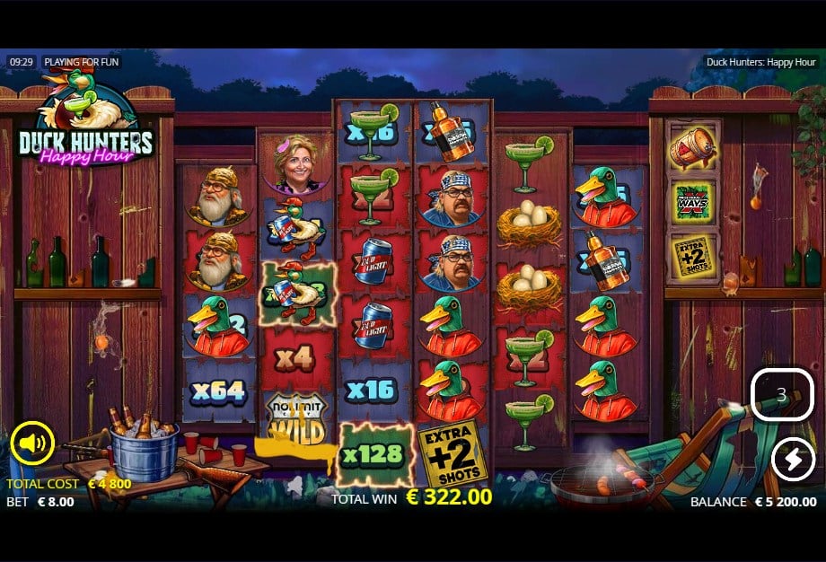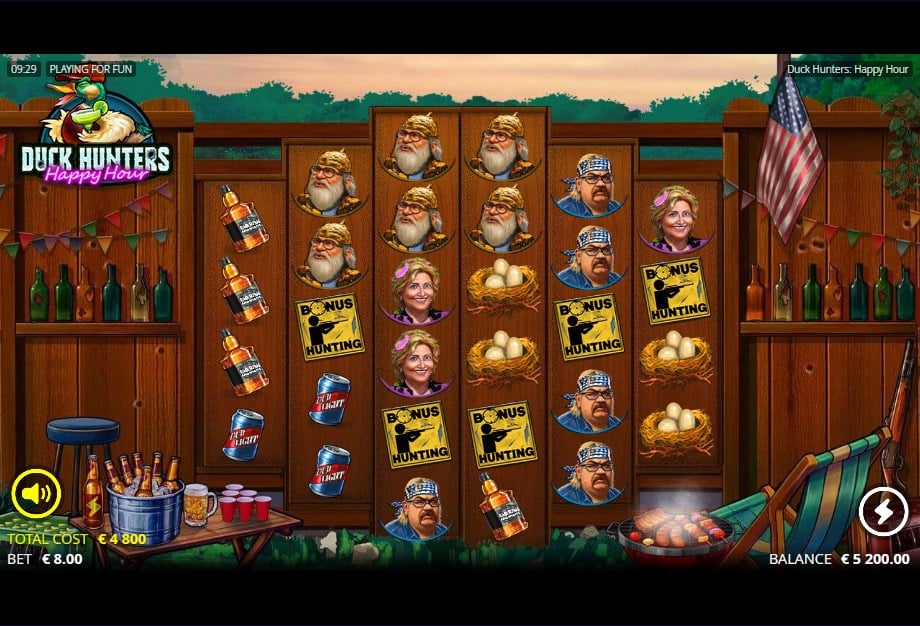 In de Duck Hunters Happy Hour demo sta je opnieuw in een over-the-top achtertuinsetting: grill aan, stoelen in het gras, koelbox vol, en ondertussen probeert de spelmotor je saldo in een achtbaan te gooien. Verwacht hoge variantie, een RTP tot 96,07% en een maximale winst van 33.333x je inzet.