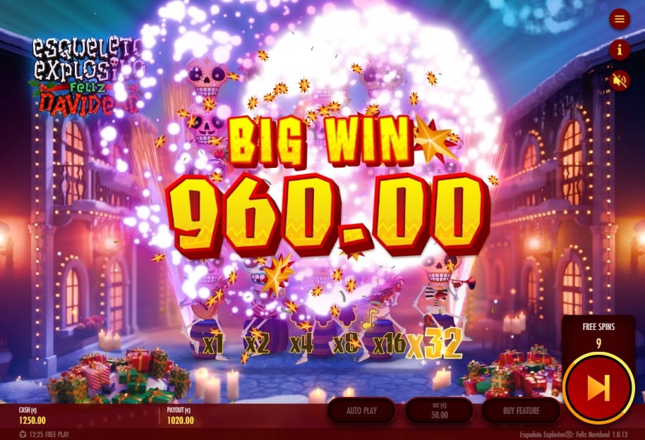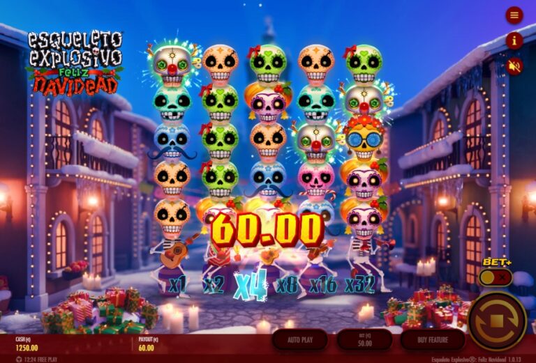 Esqueleto Explosivo Feliz Navidead is een vrolijke kerst-editie van Esqueleto Explosivo 3. De overstap naar een ‘Cluster Pays’-raster met ‘Avalanches’ heeft de klassieke gameplay gemoderniseerd en dynamischer gemaakt. De ‘Explosivo Wilds’ die de multiplier-ladder voeden zijn nog steeds de kern van het plezier. De bonus, waarin je de multiplier-ladder kunt verdubbelen tot 1.024x, biedt serieuze potentie. Een sfeervolle en zeer geslaagde gokkast, ondanks de lage RTP.