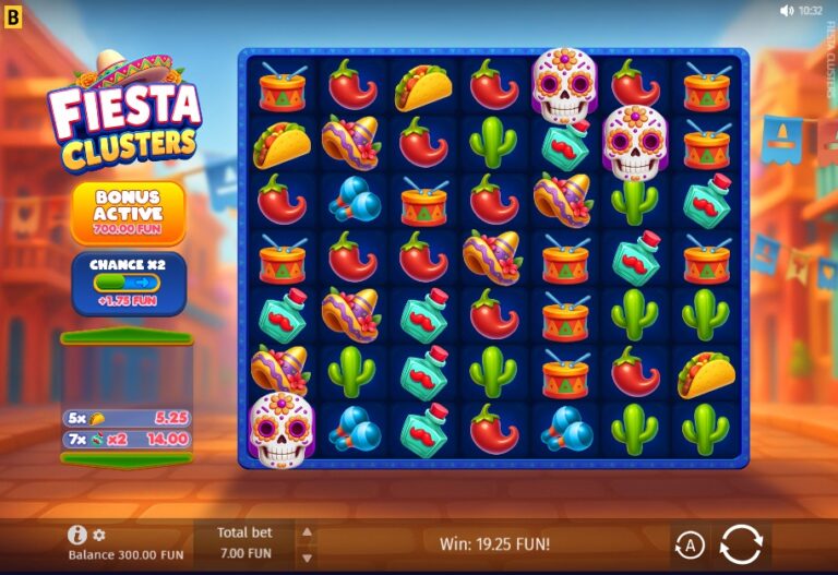 Fiesta Clusters is een extreem vermakelijke en potentieel zeer lonende gokkast. De combinatie van cluster pays, cascades en vermenigvuldigende ‘multiplier spots’ is een bewezen succesformule. Het is ook een formule die we bijna exact zo kennen van de populaire gokkast Fiesta Fortune van Pragmatic Play. Dit is in essentie een ‘reskin’ met een Mexicaans thema. Is dat erg? Niet per se. De gameplay is fantastisch en de torenhoge 97,5% RTP geeft dit spel een significant voordeel ten opzichte van veel concurrenten. Voor de ongeduldige feestganger zijn er een ‘Chance X2’ (ante bet) en een ‘Feature Buy’-optie. Een absolute aanrader voor fans van het genre. ¡Arriba! En speel de Fiesta Clusters demo!