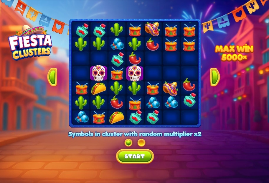 Fiesta Clusters is een extreem vermakelijke en potentieel zeer lonende gokkast. De combinatie van cluster pays, cascades en vermenigvuldigende ‘multiplier spots’ is een bewezen succesformule. Het is ook een formule die we bijna exact zo kennen van de populaire gokkast Fiesta Fortune van Pragmatic Play. Dit is in essentie een ‘reskin’ met een Mexicaans thema. Is dat erg? Niet per se. De gameplay is fantastisch en de torenhoge 97,5% RTP geeft dit spel een significant voordeel ten opzichte van veel concurrenten. Voor de ongeduldige feestganger zijn er een ‘Chance X2’ (ante bet) en een ‘Feature Buy’-optie. Een absolute aanrader voor fans van het genre. ¡Arriba! En speel de Fiesta Clusters demo!