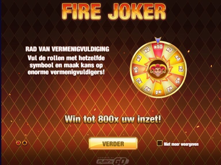 Ben jij klaar voor een hete gokervaring? Fire Joker, de nieuwste telg in de Joker-serie van Play’n GO, zet de rollen in vuur en vlam! Deze klassieke fruitautomaat met een pittige twist biedt gloeiendhete winstkansen.