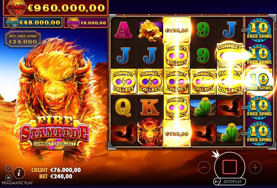 Benieuwd geworden? Speel dan de demo van Fire Stampede demo en kijk of jouw Connect & Collect-lijn de Grand weet te raken.