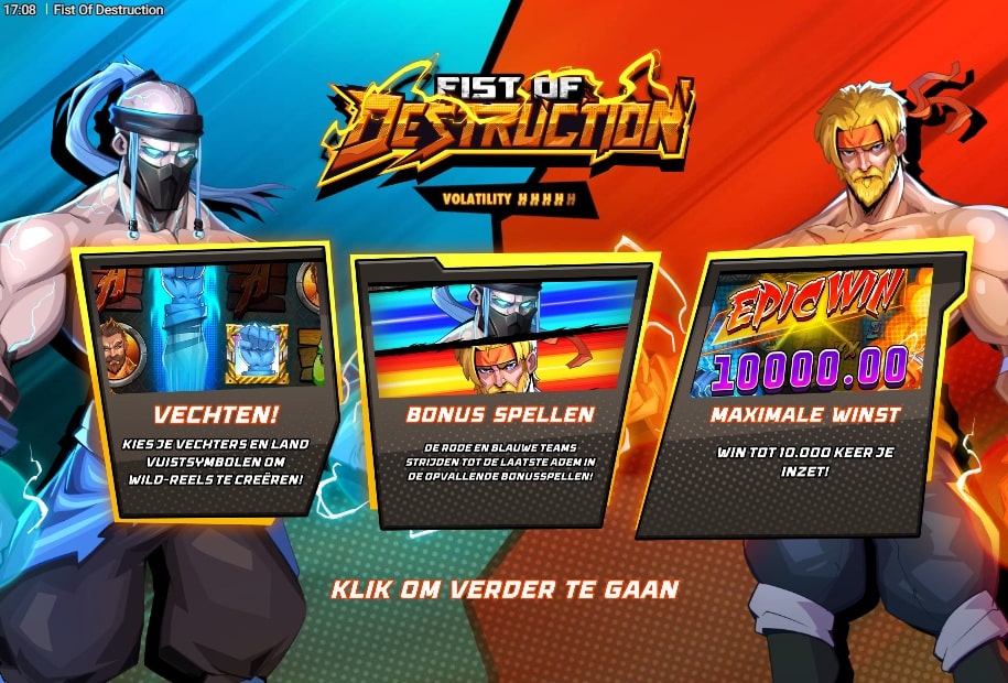 De maximale winst is vastgesteld op 10.000 keer de inzet. Voor de vechtersbazen zonder geduld zijn er in de demo diverse Feature Spins en Bonus Buy opties om direct de ring in te stappen. Let op: in Nederland is dit voor echt geld verboden. Durf jij de confrontatie aan? Trek je bokshandschoenen aan en start de Fist of Destruction demo hierboven, of speel meteen voor echt geld bij onder andere TOTO of BetMGM.