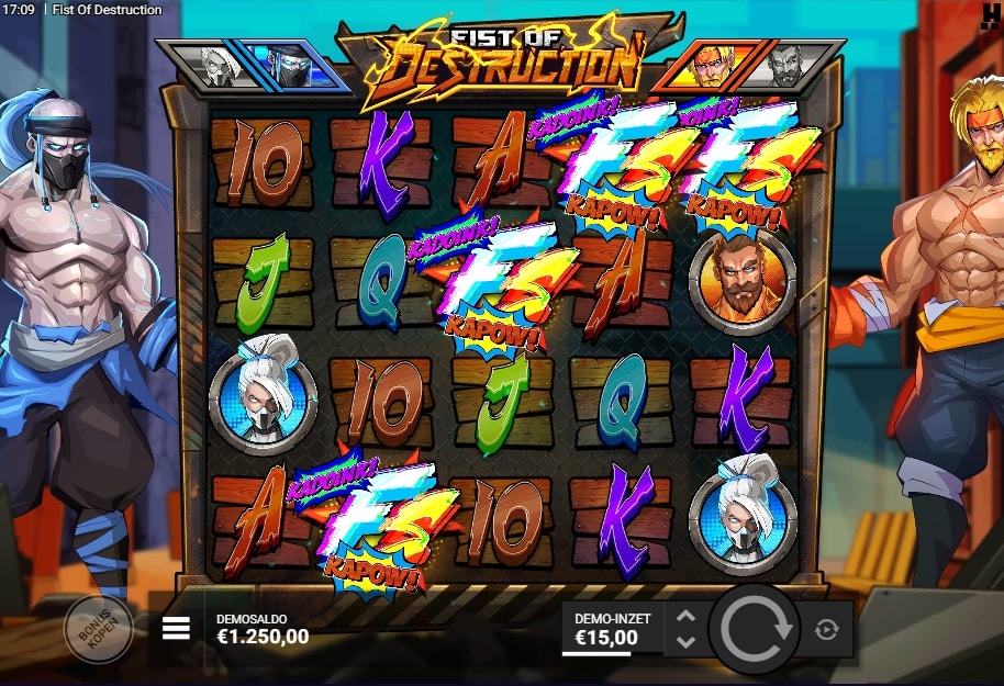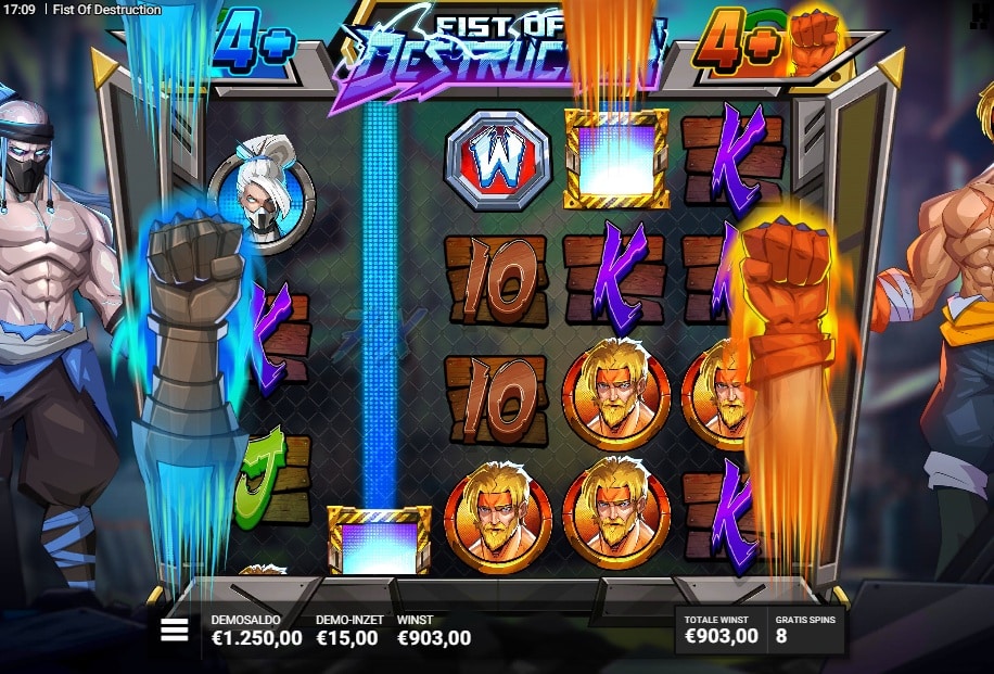 Sommige gokkasten mikken op subtiliteit maar Hacksaw Gaming kiest in de Fist of Destruction demo voor de directe aanval. Dit spel is een regelrechte ode aan de klassieke vechtspellen uit de jaren ’90, zoals Street Fighter en Tekken. We zien twee vechtersbazen aan weerszijden van de rollen staan, klaar om elkaar de hersens in te slaan. Het doet een beetje denken aan Rico Verhoeven die z’n opwachting maakt op een podium: groots, spectaculair en vol actie. De sfeer is perfect getroffen met pixel-art graphics en een pompende soundtrack die je hartslag direct omhoog jaagt. Het doel? Zoveel mogelijk vuisten op de rollen krijgen en je tegenstander knock-out slaan.