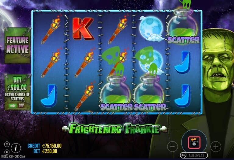 Frightening Frankie is een gokkast met een leuk idee, maar een matige uitvoering. De twee bonusrondes voelen los van elkaar aan en de basisgame is ronduit saai. Het spel mist de spanning en de diepgang die je verwacht van een moderne, hoog-volatiele gokkast. Het voelt als een gemiste kans, zeker gezien het potentieel van het Frankenstein-thema. Voor spelers die op zoek zijn naar een echt sfeervolle en mechanisch interessante horror-ervaring, zijn er veel betere alternatieven op de markt, zoals het uitstekende Horror Hotel. Voor de ongeduldige wetenschapper is er wel een Feature Buy-optie. Breng het monster tot leven en speel de Frightening Frankie demo.