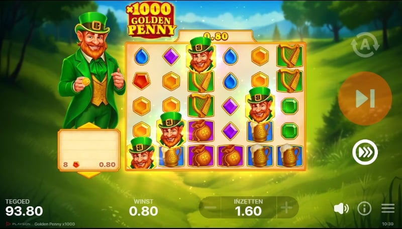Bereid je voor op een reis naar het einde van de regenboog in Golden Penny x1000, een nieuwe gokkast van Playson. Dit spel combineert het vrolijke, Ierse leprechaun-thema met de explosieve en zeer populaire ‘Scatter Pays’-mechaniek. De gameplay is een meeslepende ‘remix’ van de formule die we kennen van Pragmatic Play-hits. De kern van het spel wordt gevormd door ‘Collapsing Symbols’ (cascades) en multiplier-symbolen die kunnen oplopen tot een bizarre x1.000. De ware magie zit echter in de free spins-ronde, waar deze multipliers worden verzameld in een progressieve, globale multiplier-meter die niet reset.