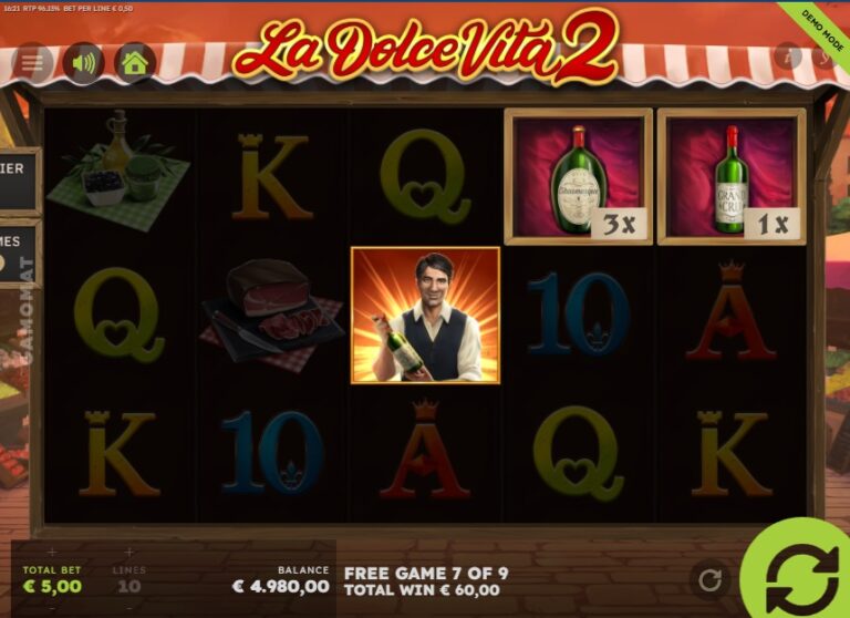 De ware smaak van ‘het zoete leven’ wordt onthuld in de ‘Free Games’ bonus. Hier komt de wijnboer (het Wild-symbool) in het spel. Hij fungeert als ‘collector’ en hengelt de geldwaarden van alle Wijnfles-symbolen op het scherm binnen. De bonusronde heeft echter een unieke en zeer krachtige twist ten opzichte van zijn vis-tegenhangers: elke Wijnfles die landt, doet twee dingen: