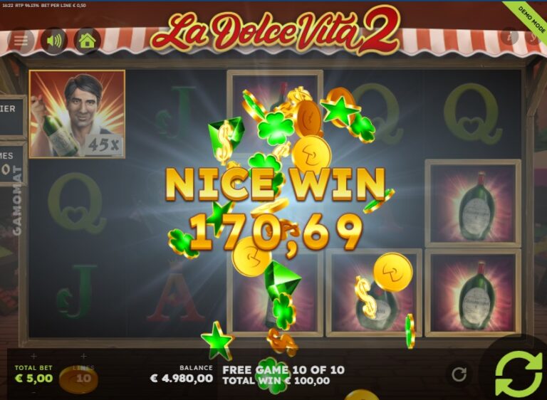 Reis af naar een zonovergoten Italiaanse markt in La Dolce Vita 2, een charmante en sfeervolle gokkast van Gamomat. In dit spel, dat draait om de simpele geneugten van het leven – goed eten, goede wijn en goed gezelschap – word je ondergedompeld in een ontspannen sfeer. Voor de ervaren speler zal de gameplay echter direct bekend aanvoelen. Dit spel is namelijk een thematische ‘reskin’ van de meest succesvolle ‘money collect’-formule op de markt, die we kennen van de legendarische Big Bass Bonanza-serie. De visser is vervangen door een wijnboer en de vissen door wijnflessen, maar de verslavende jacht op de ‘collector’ in de bonusronde is identiek. Met een toegankelijke medium volatiliteit en een unieke twist in de bonus, is dit een perfecte gokkast voor een ontspannen middag.