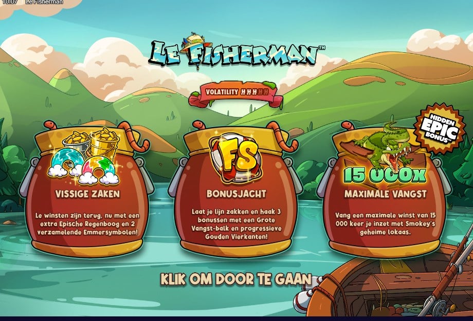 Le Fisherman is een nieuwe gokkast van Hacksaw Gaming, waarin je samen met Smokey in een fris avontuur duikt. Na eerdere successen zoals Le King, Le Pharaoh en Le Cowboy en is het nu tijd om de hengel uit te werpen.