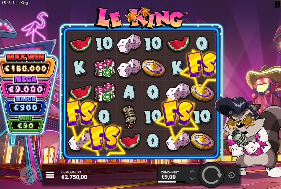Stap in de neonverlichte straten van Flam City en maak kennis met Smokey, de brutale wasbeer die in Le King zijn Elvis-look combineert met een flinke portie lef. Deze gokkast van Hacksaw Gaming barst van de energie, features en spektakel – en dankzij de Le King demo ontdek je alle geheimen van deze swingende slot zonder risico. Na eerst al Oasis-vibes te krijgen met City of Sound, is dit weer een nieuw muziek-avontuur.