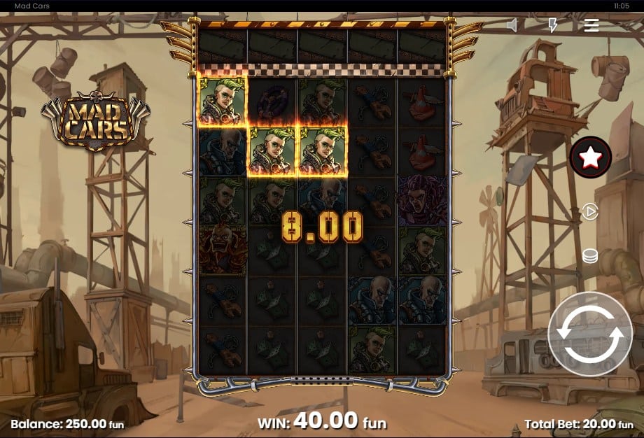 De bonus ronde, de ‘Mad Bonus’, activeer je door een Scatter Car over de finish te racen. Hier verdwijnen de reguliere symbolen en draait alles om het racen met auto’s. Je krijgt speciale modifiers zoals de ‘Persistent Payer’ en ‘Collector’ die waardes toevoegen of verzamelen. Dit mechanisme van speciale modifiers in een hold-and-win achtige setting kennen we goed van Money Train 3, al voelt het hier compleet anders omdat de symbolen daadwerkelijk moeten bewegen om uit te betalen. De maximale winst in deze chaos is 25.000 keer de inzet.
