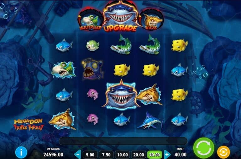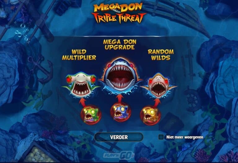 De dodelijkste roofdieren van de oceaan zijn terug voor een derde ronde in Mega Don Triple Threat, een nieuwe en zeer volatiele gokkast van Play’n GO. Dit is het vervolg op de eerdere Mega Don-spellen, maar dit keer met een ‘Triple Pot’-twist. Je bevindt je op de bodem van de oceaan, omringd door wrakstukken en hongerige haaien. De gameplay draait volledig om het vullen van drie ‘Hangry Meters’ (meters van hongerige haaien) boven de rollen. Elk van de drie haaien (de Leopard, Hammerhead en de machtige Mega Don) heeft zijn eigen unieke bonus ronde die willekeurig kan activeren. Met een maximale winst van 25.000x de inzet is dit een voederfeest waar je bij wilt zijn.