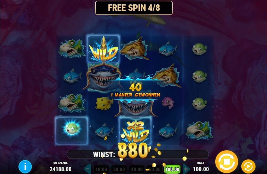 Elke haai brengt zijn eigen kracht mee naar de bonusronde (8 gratis spins):
