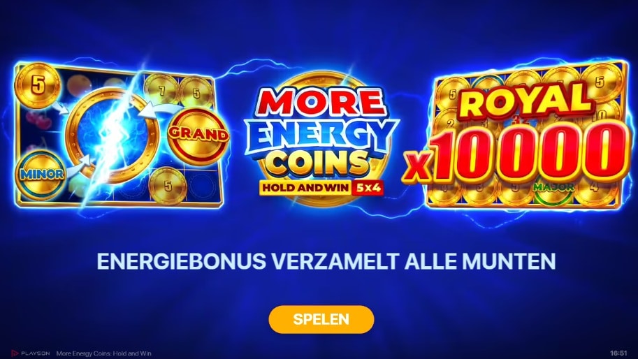 More Energy Coins: Hold and Win is een uitstekend voorbeeld van hoe je een klassiek concept fris houdt. De ‘Energy Bonus’-collector die in de basisgame al actief is, zorgt voor constante actie en voorkomt dat je alleen maar zit te wachten op de bonusronde. De toevoeging van een 10.000x Royal Jackpot voor een ‘full screen’ geeft de bonusronde een enorm potentieel. Een zeer competente en spannende gokkast voor liefhebbers van ‘Hold & Win’.
