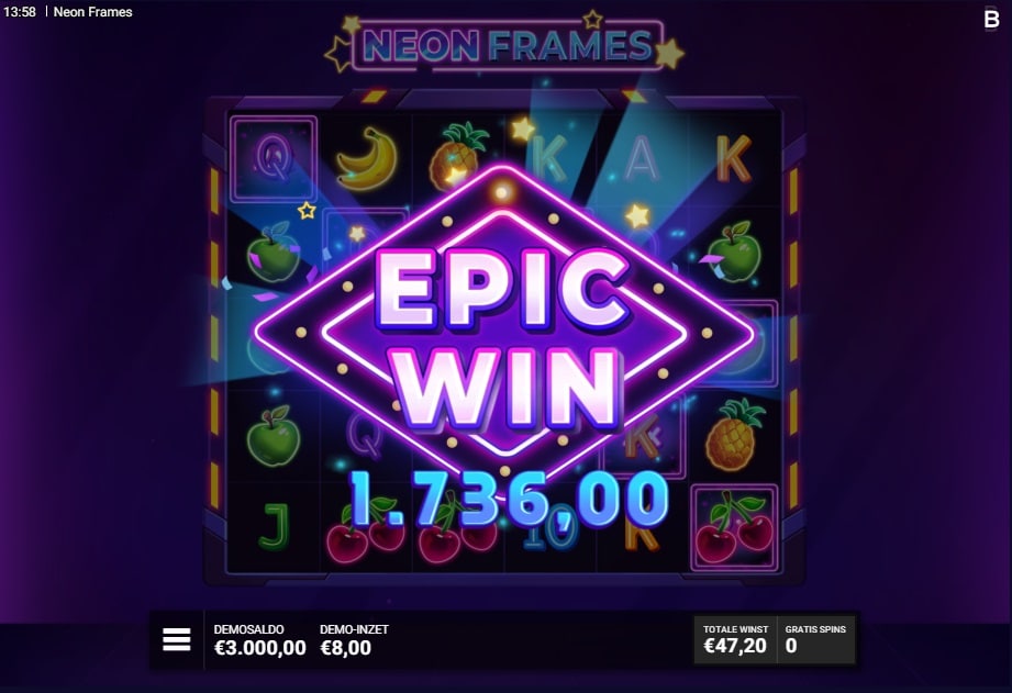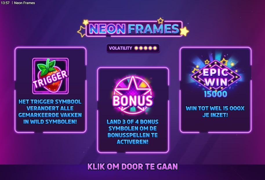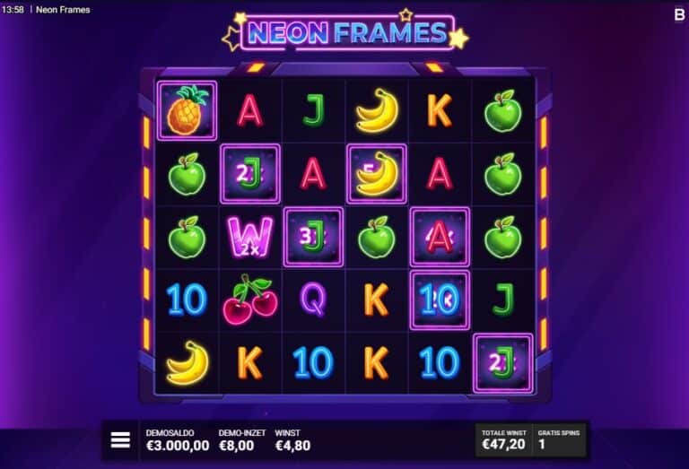 • Berry Wild Burst Bonus (3 Scatters): Je ontvangt 10 gratis spins. In deze modus zijn de ‘Neon Frames’ persistent tussen de spins, maar ze verdwijnen zodra ze worden geactiveerd door een ‘Trigger’-symbool.