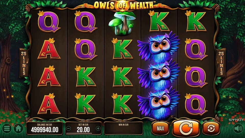 Owls of Wealth is een verrassend slimme en originele gokkast. Het ontbreken van een wild-symbool wordt perfect gecompenseerd door de ‘Symbol Upgrade’-cascade. Het is extreem bevredigend om een lage winst te zien veranderen in een hogere winst, die vervolgens weer upgrade, enzovoort. De bonusronde is een slimme ‘Hold & Respin’-variant waarbij de ‘reset’-mechaniek zorgt voor een constante, spannende jacht. Een zeer geslaagde en unieke gokkast van SYNOT Games.