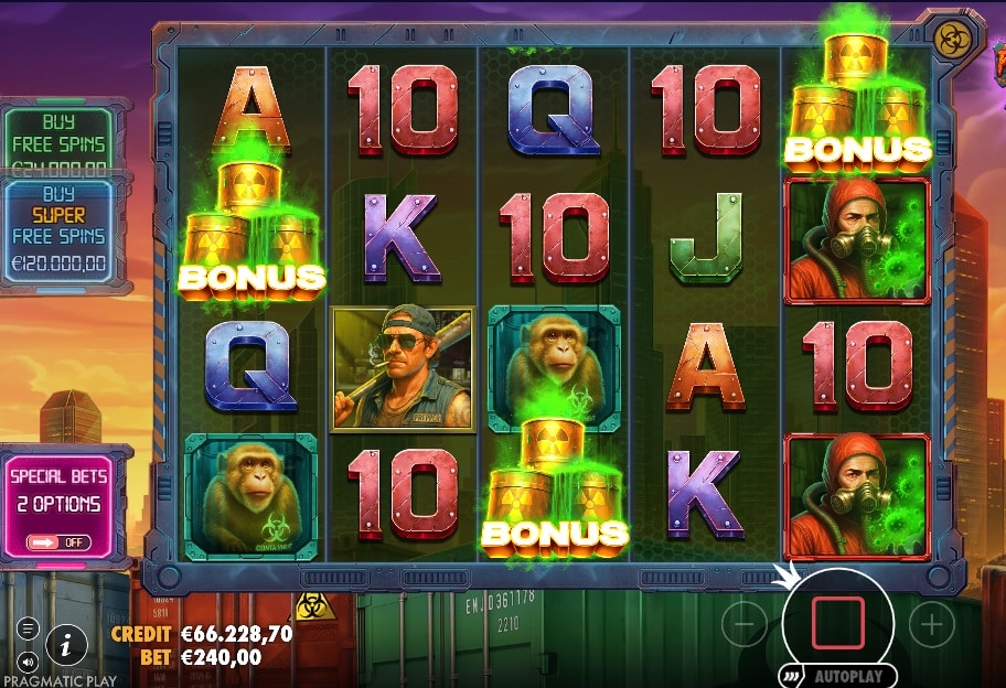 Het spel speelt zich af op een 5×4 raster met 40 vaste winlijnen, tegen de achtergrond van een verlaten metropool. De symbolen, van gasmaskers tot personages in quarantaine, versterken de beklemmende sfeer. De basisgame is een relatief rustige opmaat naar de bonusronde. De belangrijkste feature hier zijn de Wild Multipliers. Wild-symbolen kunnen op de middelste drie rollen landen en hebben een willekeurige multiplier tot x10, die wordt toegepast op elke winst waar ze deel van uitmaken. Als er meerdere wilds in een winlijn zitten, worden hun waardes bij elkaar opgeteld. De standaard RTP is een hoge 96,51% (kan variëren) en de volatiliteit is eveneens zeer hoog.