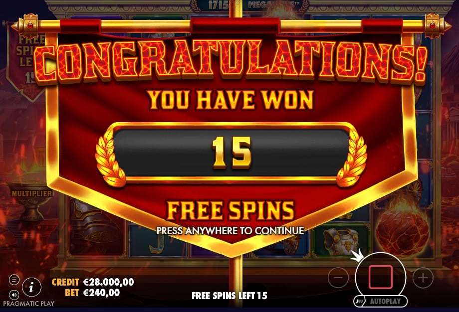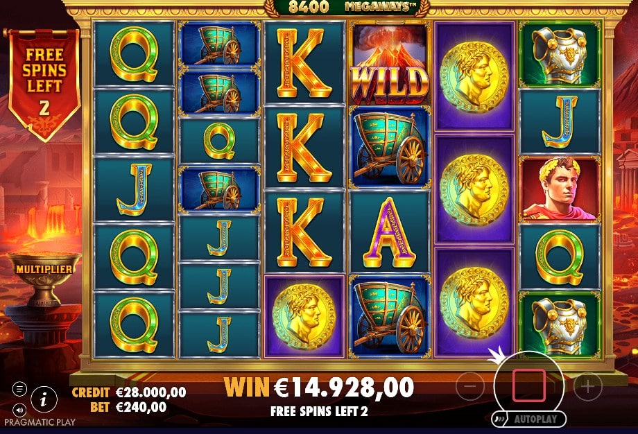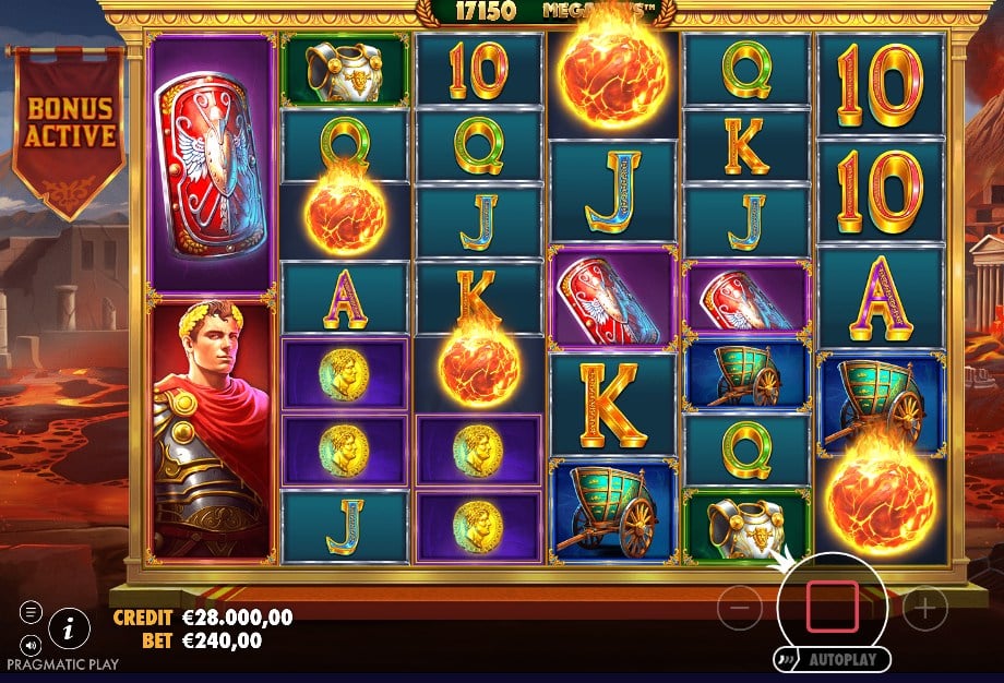De symbolen zijn Romeins: munten, schilden, strijdwagens, pantser en een keizer als premium. De Wild is een mini-vulkaan en valt niet op rol 1, maar wel op rol 2 t/m 6. Dat past stiekem prima bij het gevoel van deze slot: je moet vaak eerst “op gang komen” voordat het echt begint te rollen.