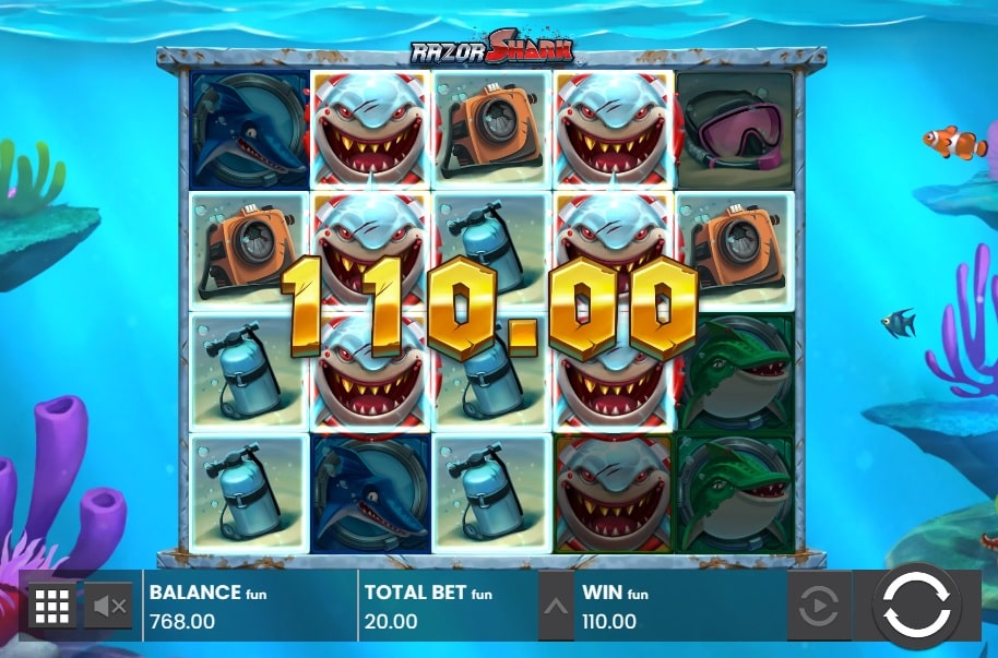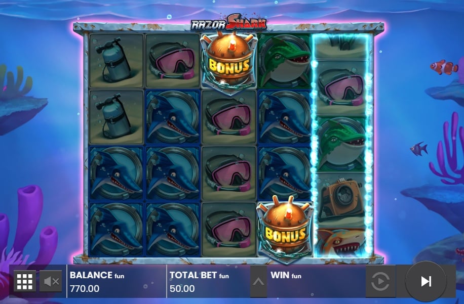De zeewier-symbolen openen zich en onthullen allemaal hetzelfde symbool of de zeer gewilde Gouden Haai. Bij elke daaropvolgende draai schuiven de stapels zeewier één positie naar beneden totdat ze van het scherm verdwijnen. Dit zorgt ervoor dat je met één enkele inzet meerdere keren kans maakt op winnende combinaties. Dit mechanisme werd later verder geperfectioneerd in het brute vervolg Razor Returns maar hier in het origineel voelt het nog steeds fris en spannend aan.