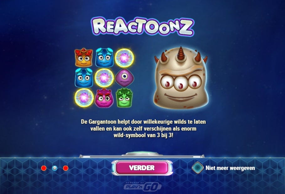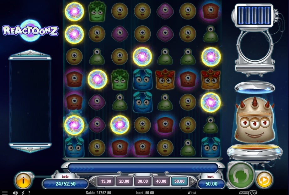 Aliens met attitude, energiegeladen animaties en een 7×7 speelrooster vol actie. Dat kan maar één ding betekenen: Reactoonz is terug. Deze knotsgekke opvolger van Energoonz neemt je mee naar een andere dimensie waar je wordt beloond voor elke cluster van matchende wezens. Hoe groter je combo, hoe hoger je winst. En met wilds in de vorm van fluxcapacitors blijf je keer op keer kans maken op nieuwe winnende combinaties.