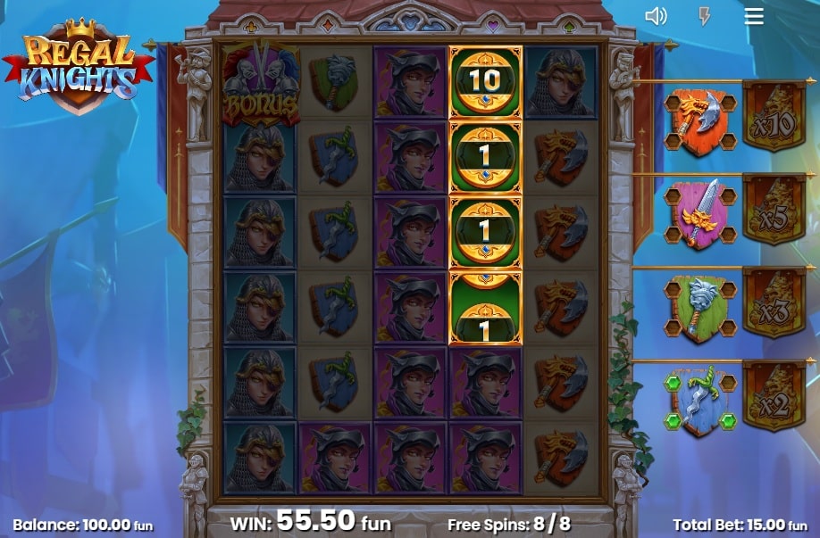 Benieuwd of jij de nobele strijd aandurft? Hijs jezelf in het zadel en start de Regal Knights demo of speel met echt geld bij Kansino of TOTO.