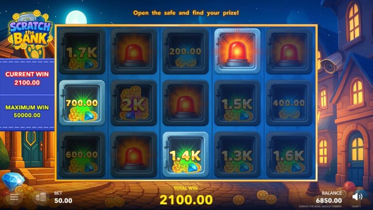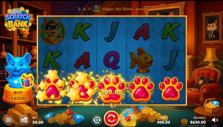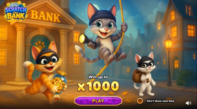 Scratch the Bank is een gokkast met een ingebouwde existentiële crisis na elke winnende spin. De gameplay dwingt je constant om een keuze te maken: neem je de veilige weg en pak je je kleine winst, of zet je alles op het spel in het ‘Risk Game’-prijzenwiel voor een kans op een veel grotere buit? Deze constante, zenuwslopende afweging is de briljante kern van het spel. De ‘pick-and-click’-bonusronde is een leuke, zij het wat simpele, climax. De lage RTP is een flinke domper, maar voor een korte, strategische en zeer vermakelijke kraak is dit een van de leukste kattenkwaad-spellen die er is.