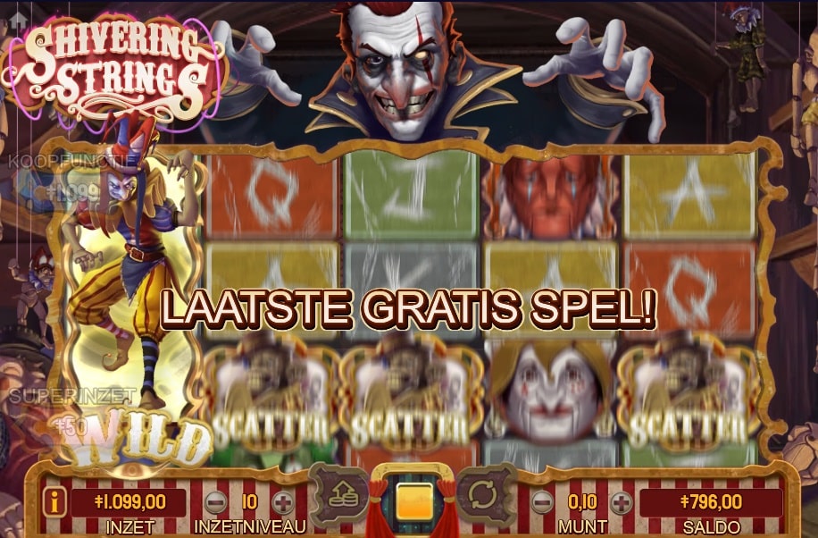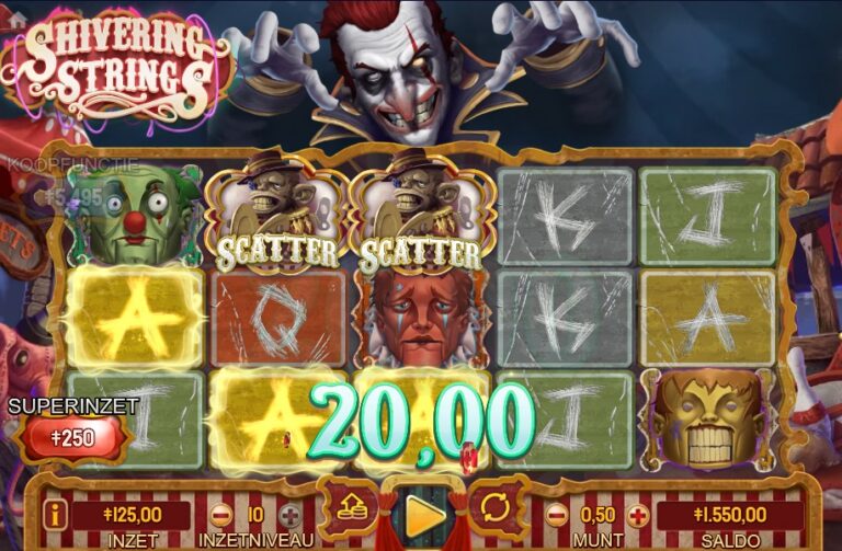 Shivering Strings is een thematische voltreffer. De manier waarop de duistere, theatrale sfeer is verweven in de gameplay is briljant. De twee aparte features voelen aan als twee verschillende bedrijven in een toneelstuk. De Macabre Masquerade is een spannende, willekeurige act in de basisgame, terwijl de Marionette March een meeslepende en zeer lonende climax is in de bonusronde. De sfeer, met zijn focus op enge, cartooneske personages, doet denken aan het eveneens knotsgekke Klowns van Hacksaw Gaming. Voor spelers die houden van een sterk thema en unieke, gelaagde features, is dit een voorstelling die je niet mag missen. Neem plaats en speel de Shivering Strings demo!